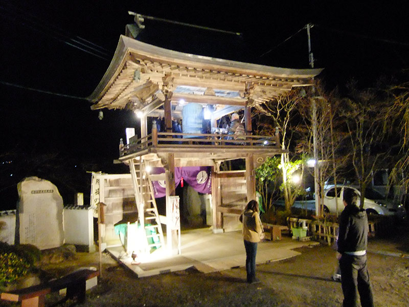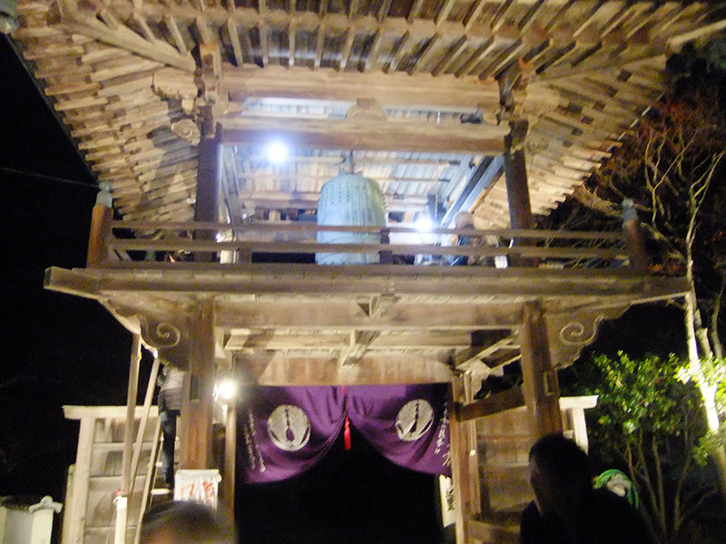 午後11時30分除夜の鐘を撞きに参拝者が訪れます。役員の方が参拝者へのミカンの用意。そして、檀家を始め数名の方が今か今かと待ちかねています。紅白歌合戦が終わるといよいよ除夜の鐘を撞き始める準備です。